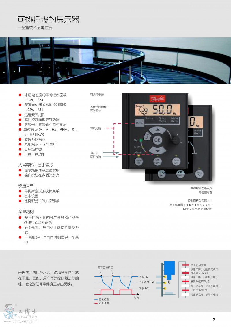 性能強大,降低了安裝成本。丹佛斯變頻器VLT® Micro Drive FC 51 外形小巧,但功能強大且經久耐用。由于外形緊湊,調試要求低,因此可節省配電盤空間和安裝成本。