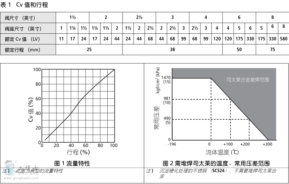 閥體、閥芯材料配套和工作溫度范圍,參考表 1。