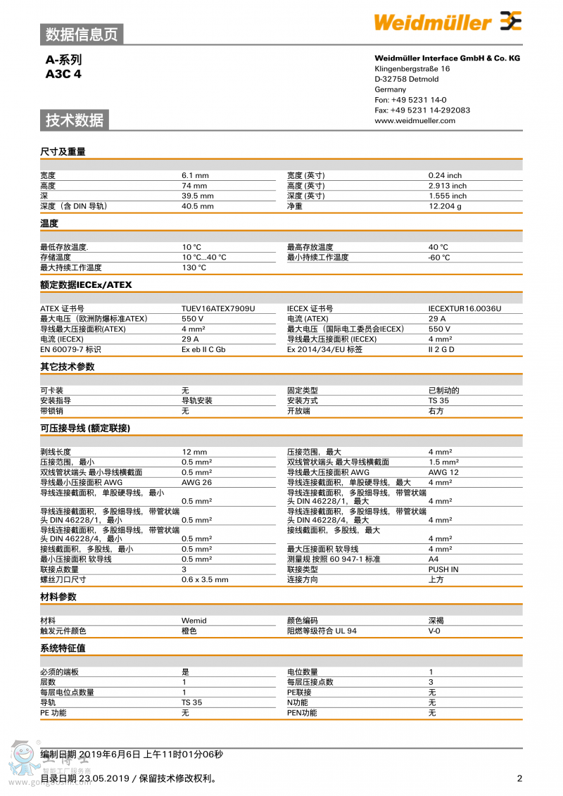 魏德米勒weidmulle直通型接線端子A3C 4訂貨號(hào)2051240000 |