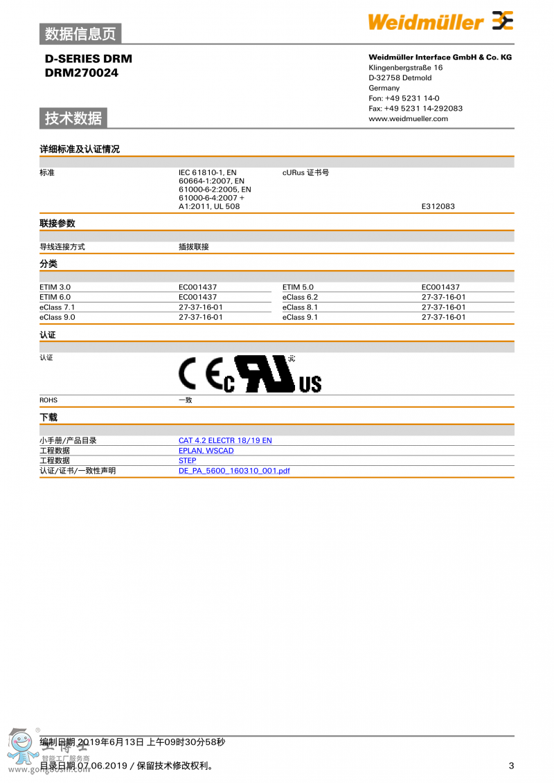 魏德米勒weidmulle標準繼電器DRM270024訂貨號7760056051 |