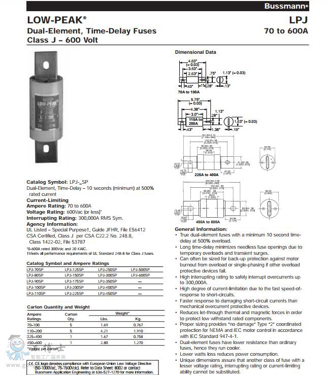 LPJ-45SP 45A 600Vac 巴斯曼延時熔斷器 |