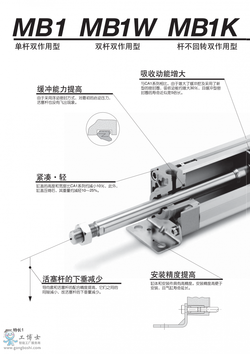 MB1/MDB1 SMC標準型氣缸(方形端蓋)