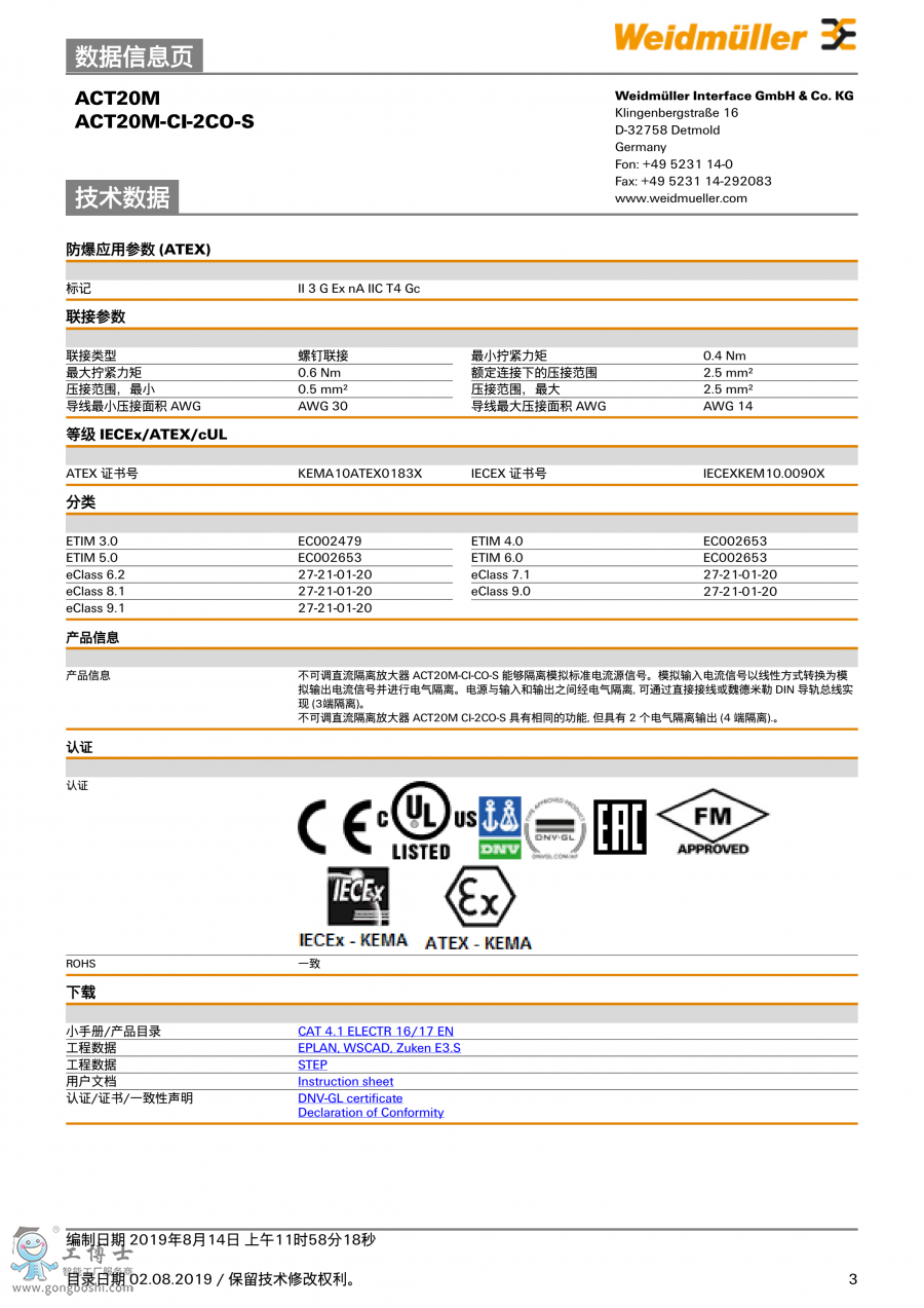 ACT20M-CI-2CO-S 魏德米勒weidmueller信號分配器 訂貨號117599000 |