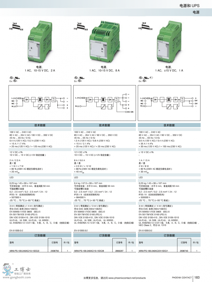 菲尼克斯電源MINI-PS-100-240AC/10-15DC/2訂貨號2938756原裝現貨