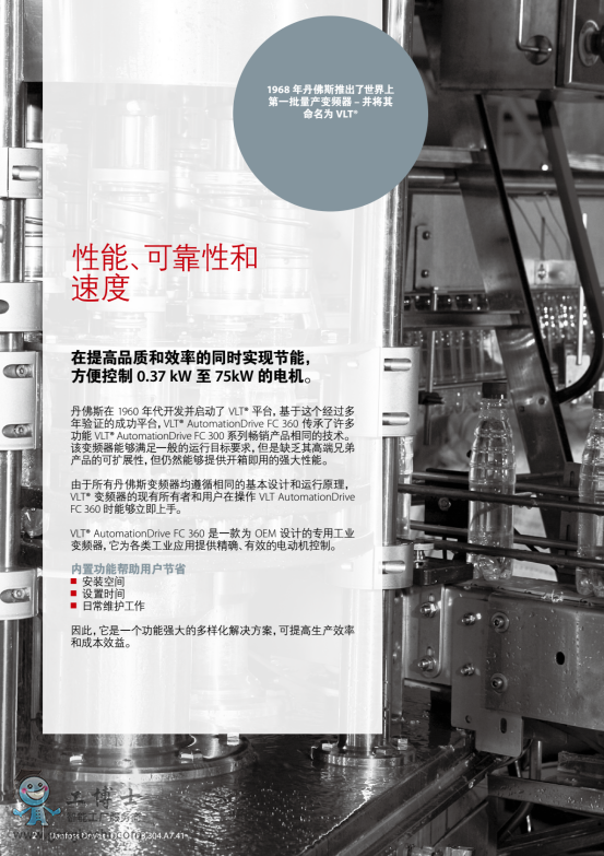 VLT® AutomationDrive 可在惡劣環境下穩定可靠運行。帶有涂層的 PCB 可防塵、防潮和防顆粒物,*高工作溫度為 55℃。PID 控制器、EMC 濾波器、直流電抗器和 22 kW 制動斬波器等內置功能部件可節省成本和安裝空間。IP 20 防護等級、可拆卸風扇、增強型數字顯示屏,可確保快捷設置和簡化維護。