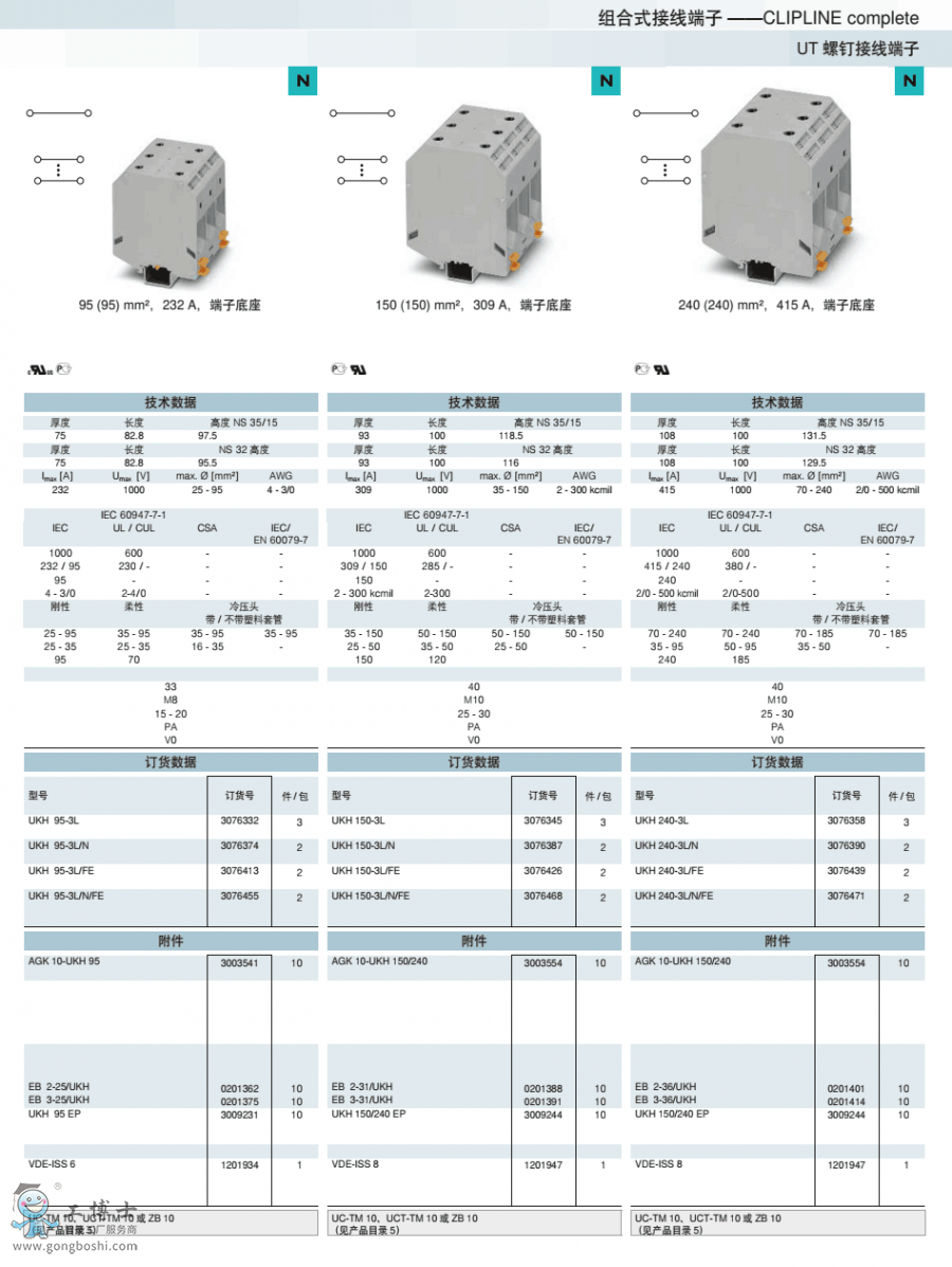 菲尼克斯phoenix螺釘接線UKH 95-3L/FE訂貨號3076413原裝現貨 可開增票
