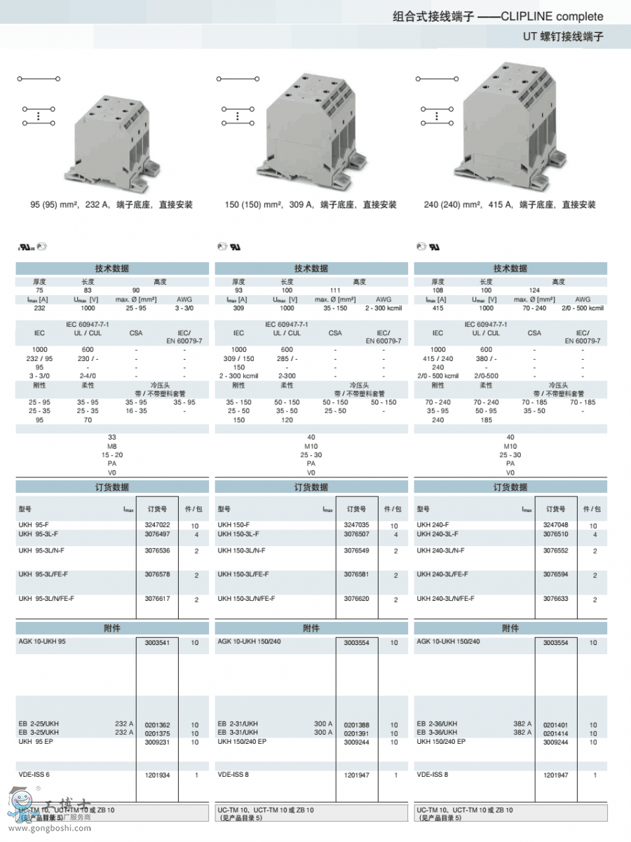 菲尼克斯phoenix螺釘接線UKH 240-3L/N-F訂貨號3076594原裝現貨 可開增票