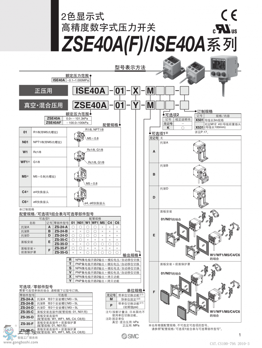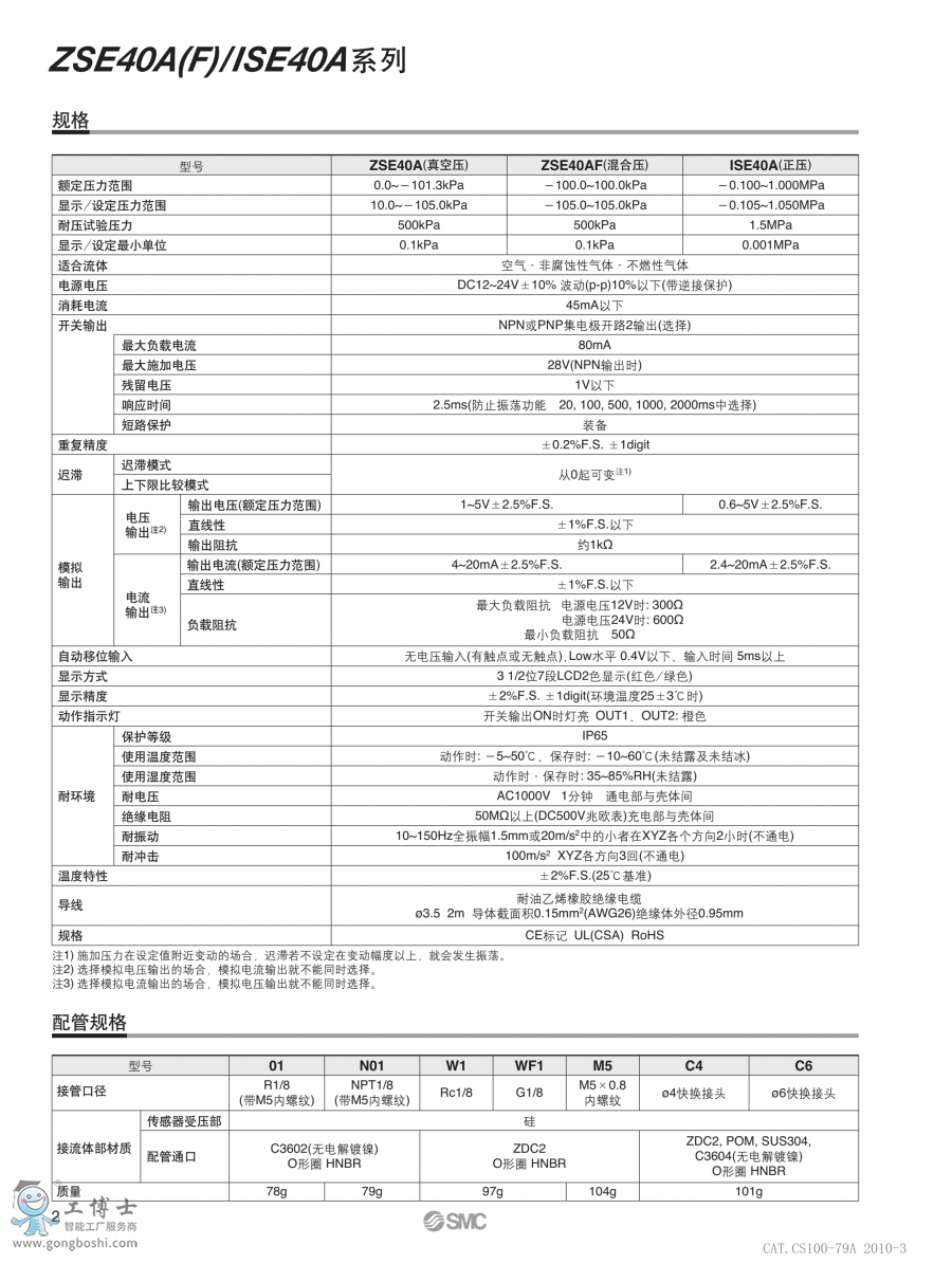 ZSE40A(F)/ISE40A SMC 2色顯示式高精度數字式微壓開關