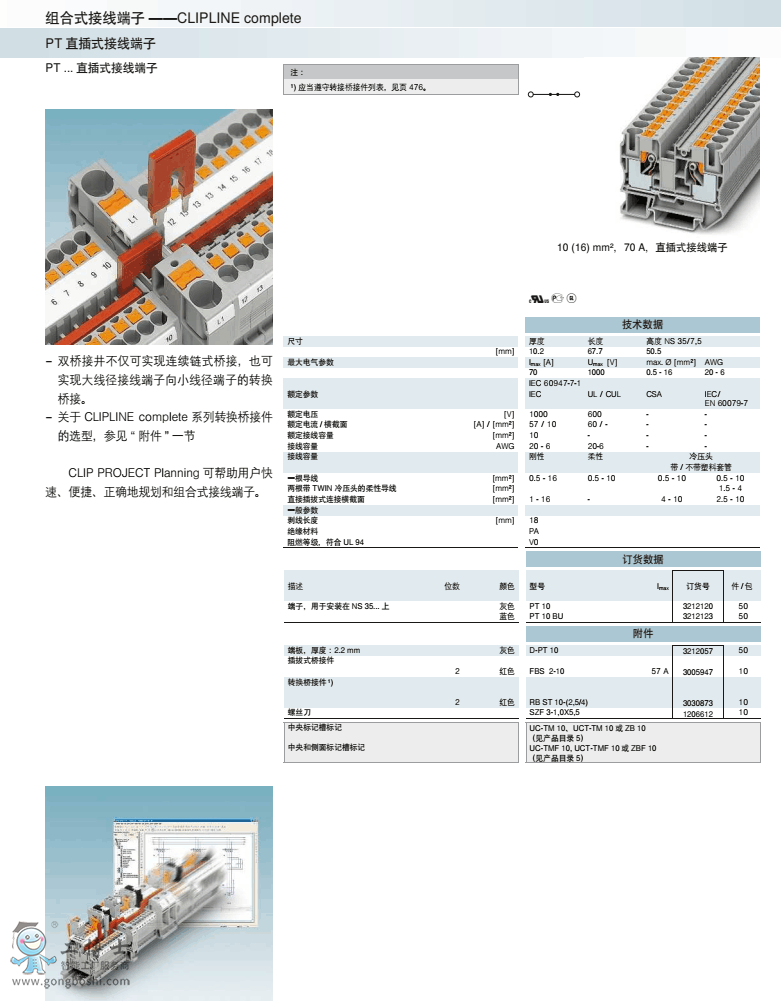菲尼克斯phoenix直插式接線 PT 10 BU訂貨號3212123原裝現貨 可開增票