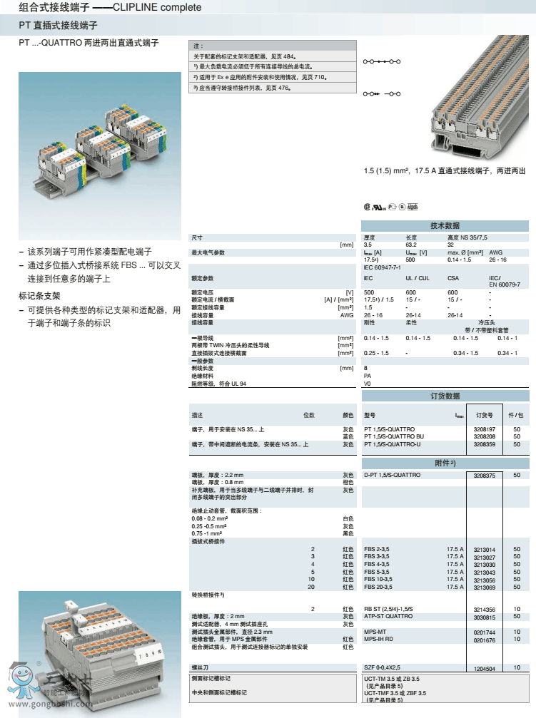 菲尼克斯phoenix直插式接線 PT 1,5/S-QUATTRO-U訂貨號(hào)3208359原裝現(xiàn)貨