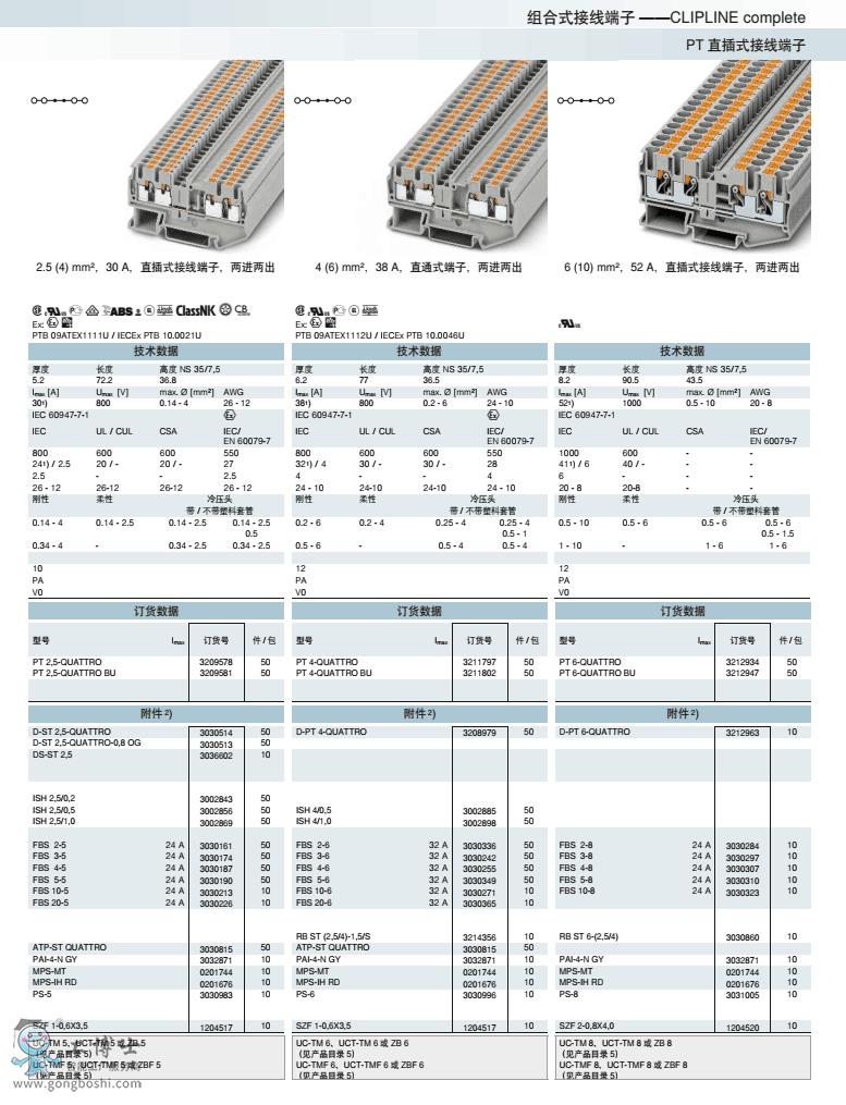 菲尼克斯phoenix直插式接線PT 6-QUATTRO BU訂貨號3212947原裝現貨 可開增票