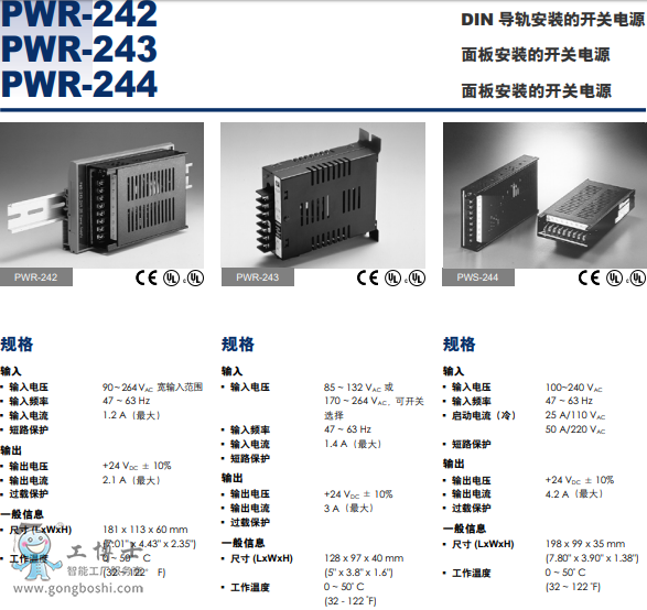研華PWR-243面板安裝的開關(guān)電源 輸入短路保護(hù) |