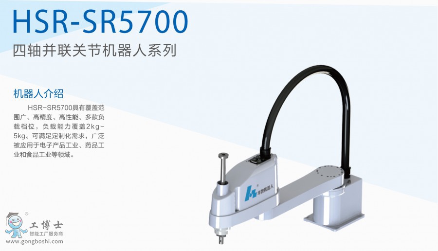 HSR-SR5700具有覆蓋范圍廣、高精度、高性能、多款負載檔位,負載能力覆蓋2kg—5kg。可滿足定制化需求,被廣泛應用于電子產品工業、藥品工業和食品工業等領域。