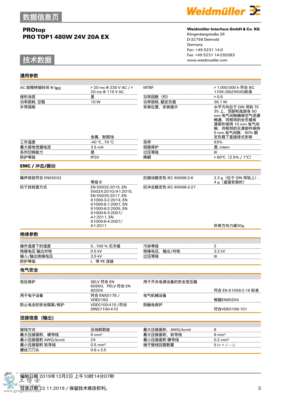PRO TOP 480W 24V 20A EX 魏德米勒 開關電源模塊 訂貨號2467000000 |