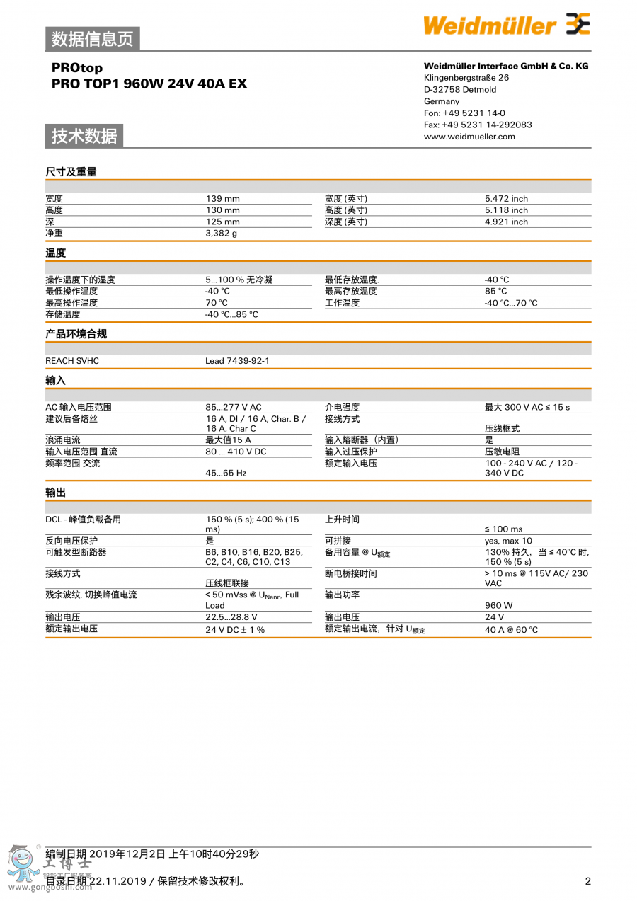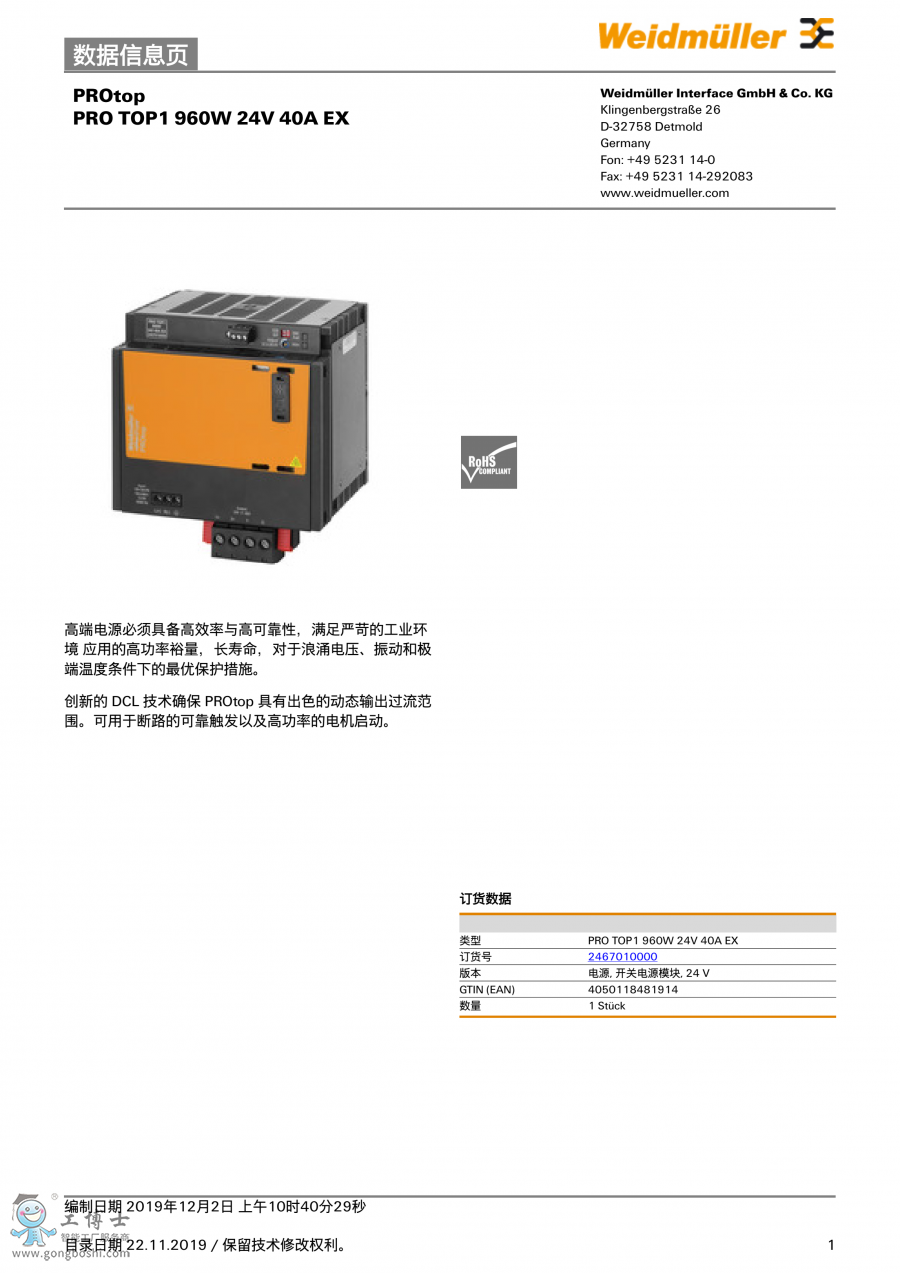 PRO TOP 960W 24V 40A EX 魏德米勒 開關電源模塊 訂貨號2467010000 |