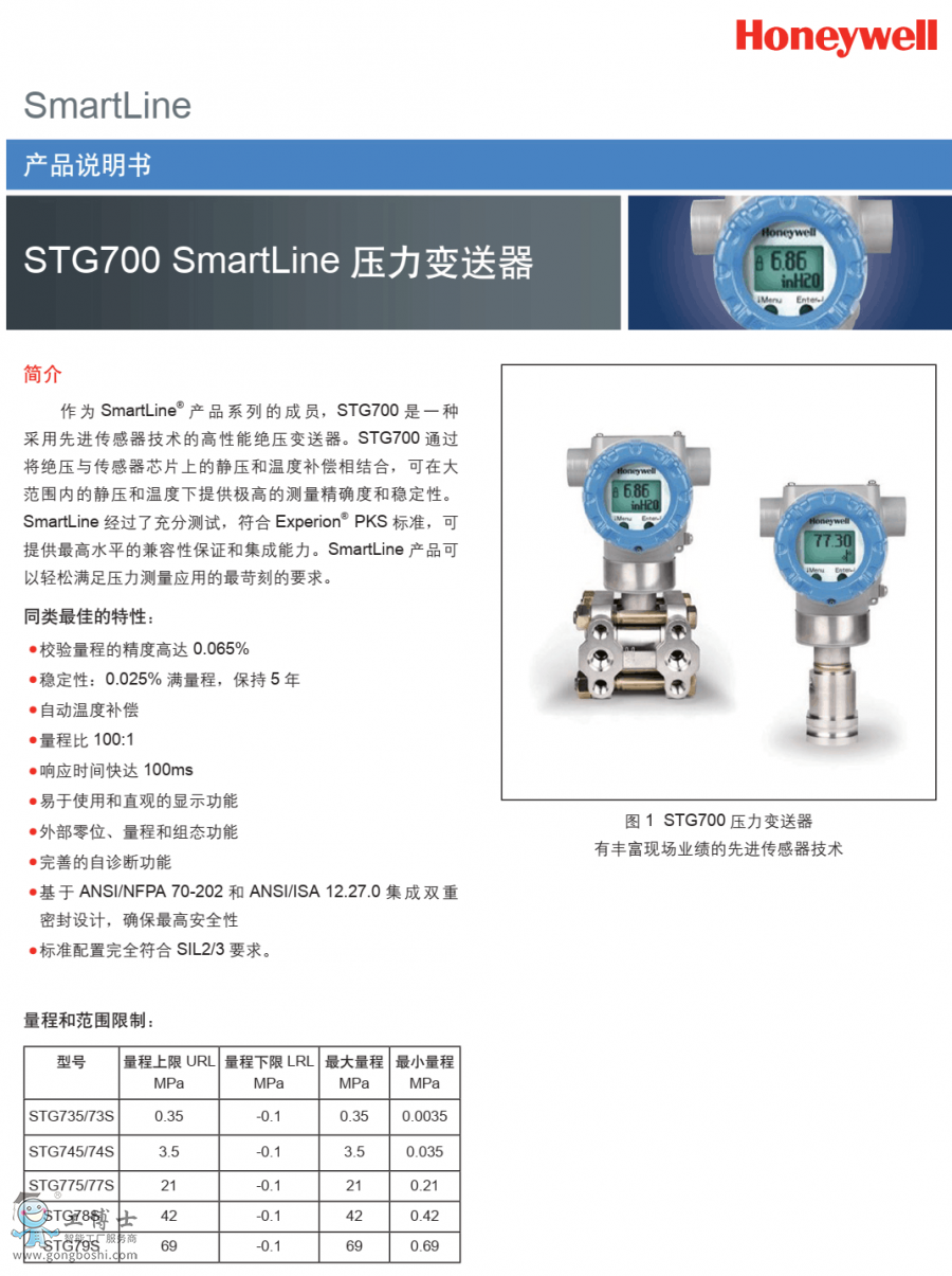 霍尼韋爾差壓變送器STD725-E1AC4AS-1-0-AHS-11S-A-10A0現貨