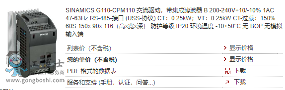產品說明 SINAMICS G110-CPM110 交流驅動,帶集成濾波器 B 200-240V+10/-10% 1AC 47-63Hz RS-485-接口 (USS-協議) CT:0.25kW;VT:0.25kW CT-過載:150% 60S 150x 90x 116(高x寬x深) 防護等級 IP20 環境溫度 -10+50°C 無 BOP 無模擬輸入端
