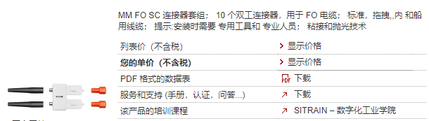 產品說明 MM FO SC 連接器套組; 10 個雙工連接器,用于 FO 電纜; 標準,拖拽,,內 和船用線纜; 提示:安裝時需要 專用工具和 專業人員; 粘接和拋光技術