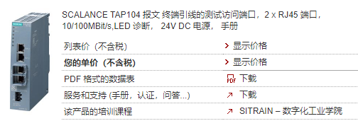 SCALANCE TAP104 報文 終端引線的測試訪問端口,2 x RJ45 端口, 10/100MBit/s,LED 診斷, 24V DC 電源, 手冊 |
