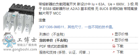 帶熔斷器的負載隔離開關(guān) 新設(shè)計中 Iu = 63A,Ue = 690V,3 極 用于 BS88 熔斷器形狀 A2/A3 基本規(guī)格 無 8UC6 手柄和軸 帶隔離接觸片用于 MCC |