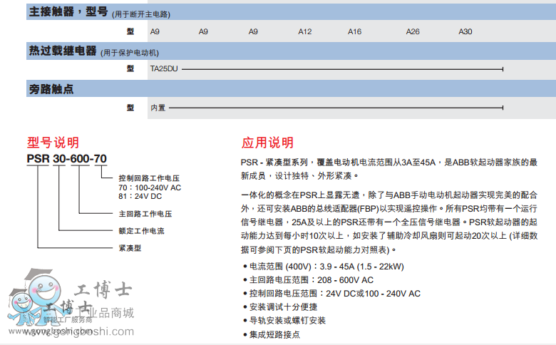 一體化的概念在PSR上顯露無遺,除了與ABB手動電動機起動器實現**的配合