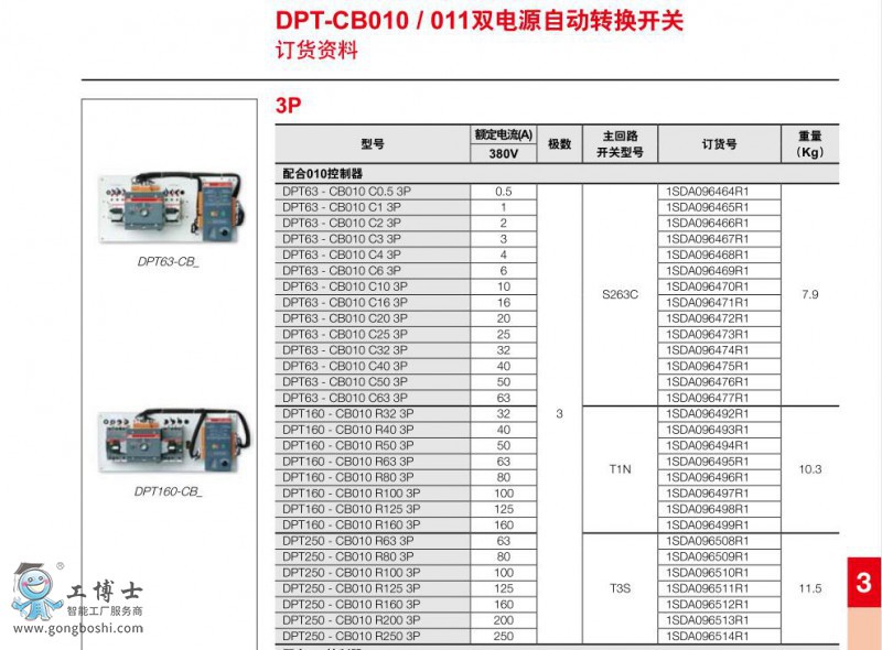 DPT160-CB010 R100 3P ABB雙電源自動轉換開關