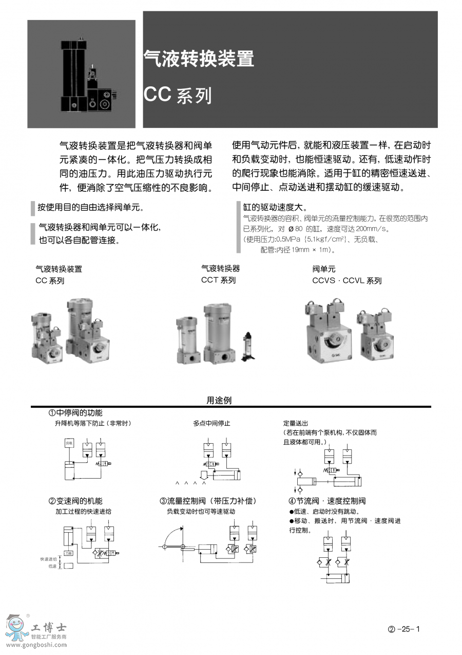 將氣壓變換為液壓,可使氣動元件獲得與液壓單元相同的功能。