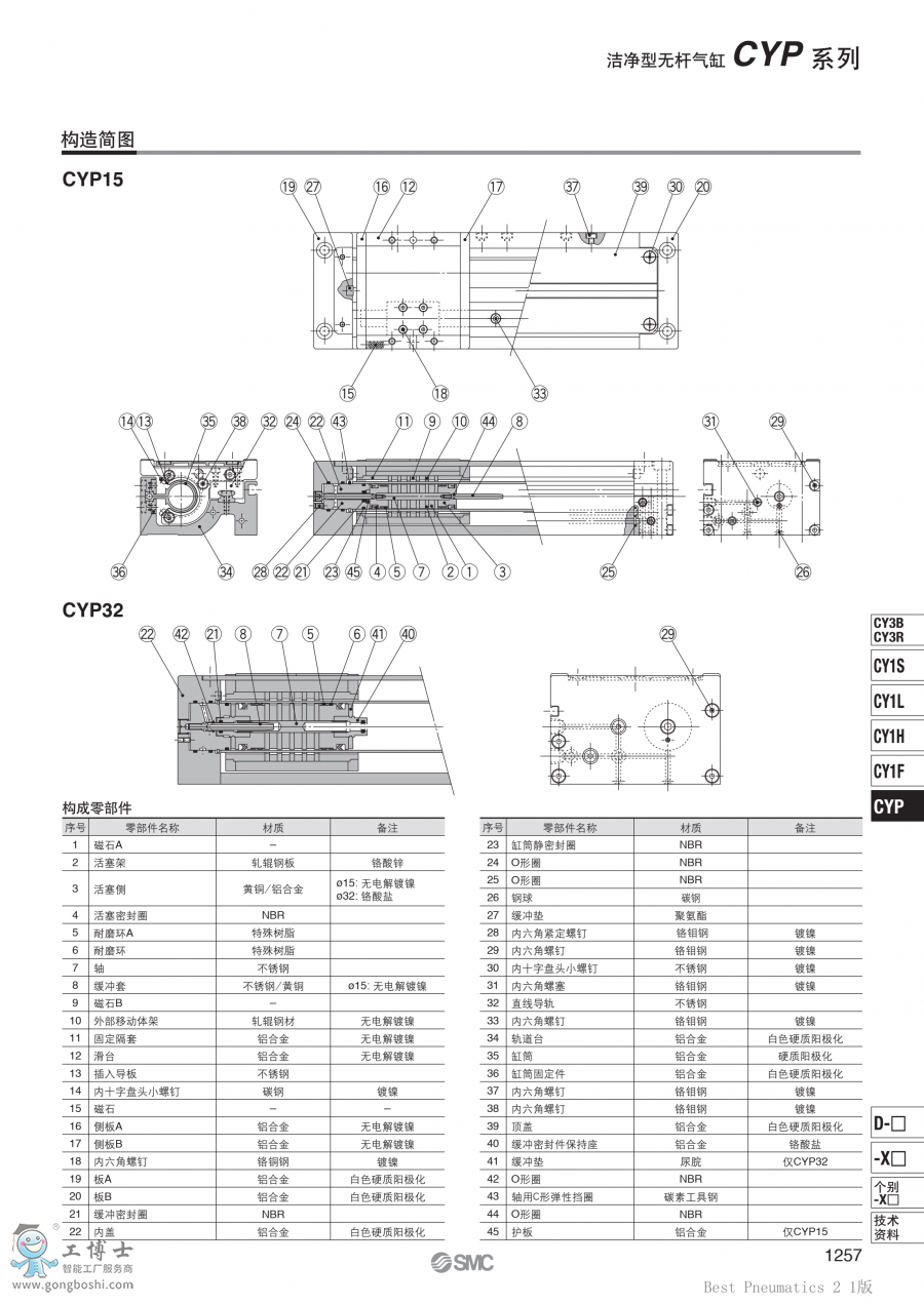 CY1F SMC 磁耦合式無桿缸/低重心導軌型