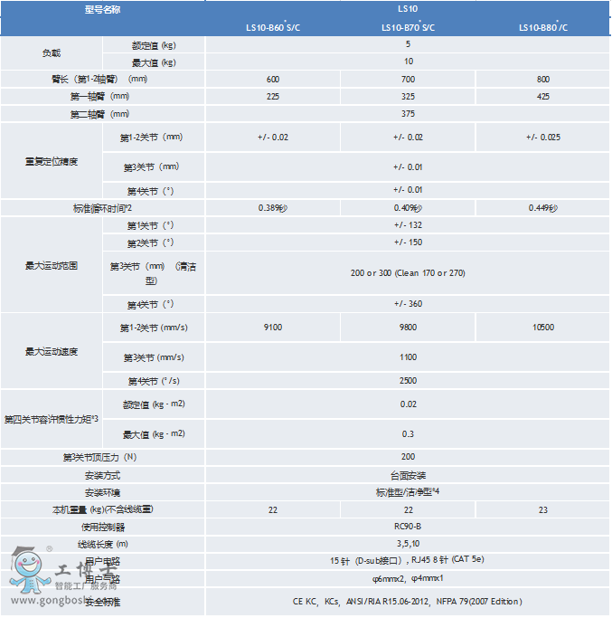 LS10-B SCARA有臂長為600mm,700mm和800mm三種可選型號,其Z軸提供200mm和300mm兩種型號(潔凈型為170mm和270mm)。LS10-B SCARA也有ISO 4級潔凈型可選。這使愛普生SCARA機器人有更多選擇,確保在下次應用時也可以選擇合適的機器人。