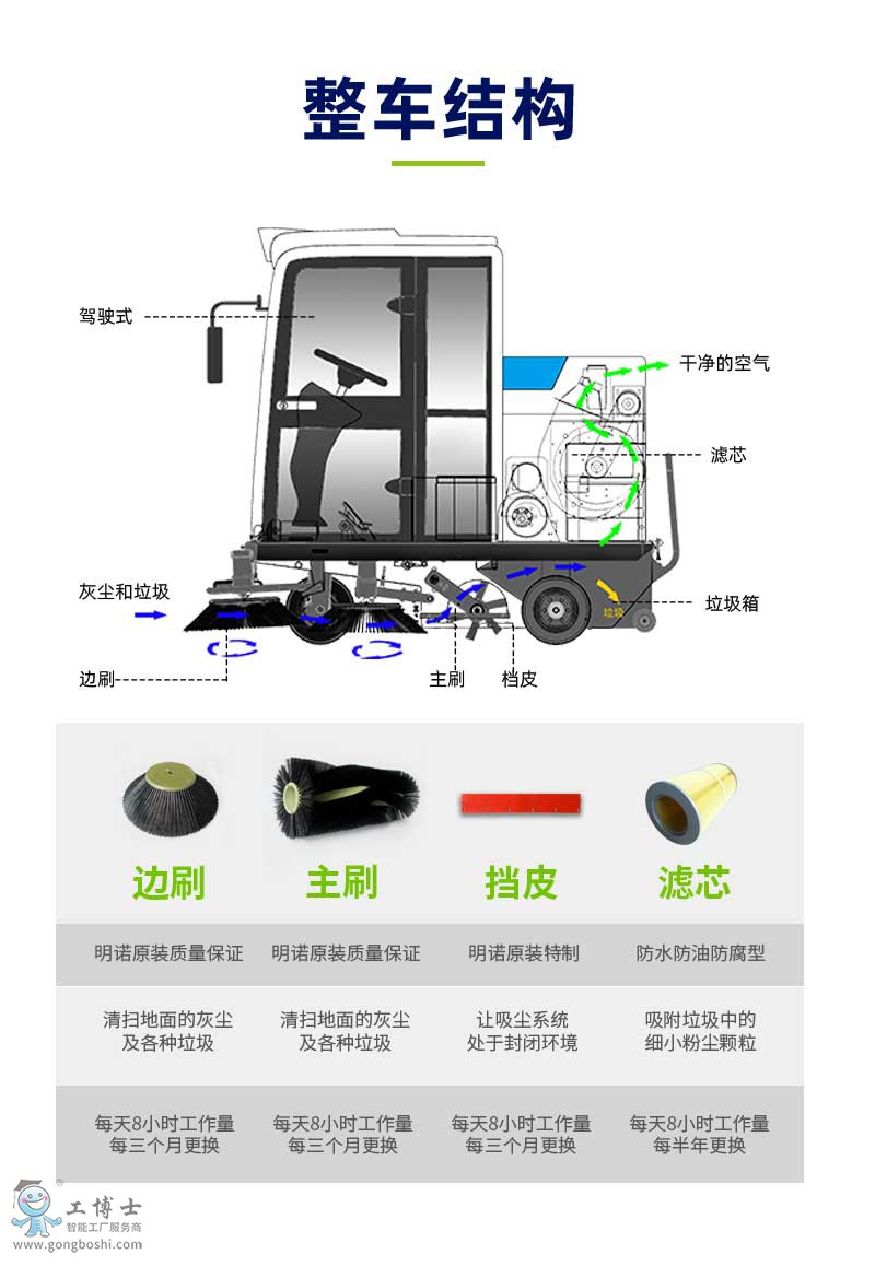 采用三輪掃地機超大過濾系統,過濾面積大,吸塵能力強;水箱容量大,噴霧時間長。