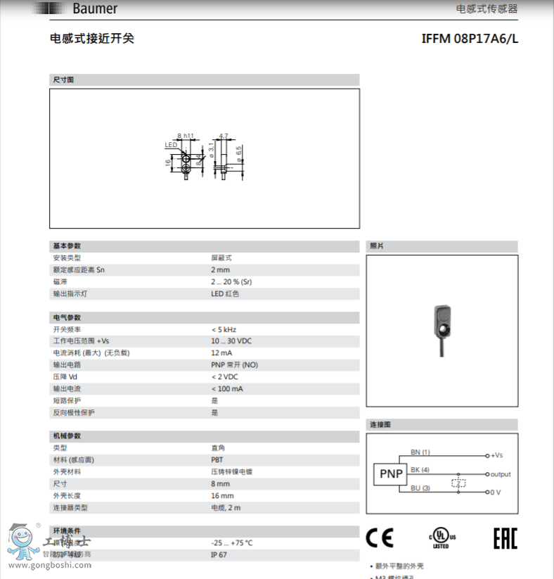 Baumer 堡盟 IFFM 08P17A6/L-電感式接近開關傳感器現貨可開增票 |