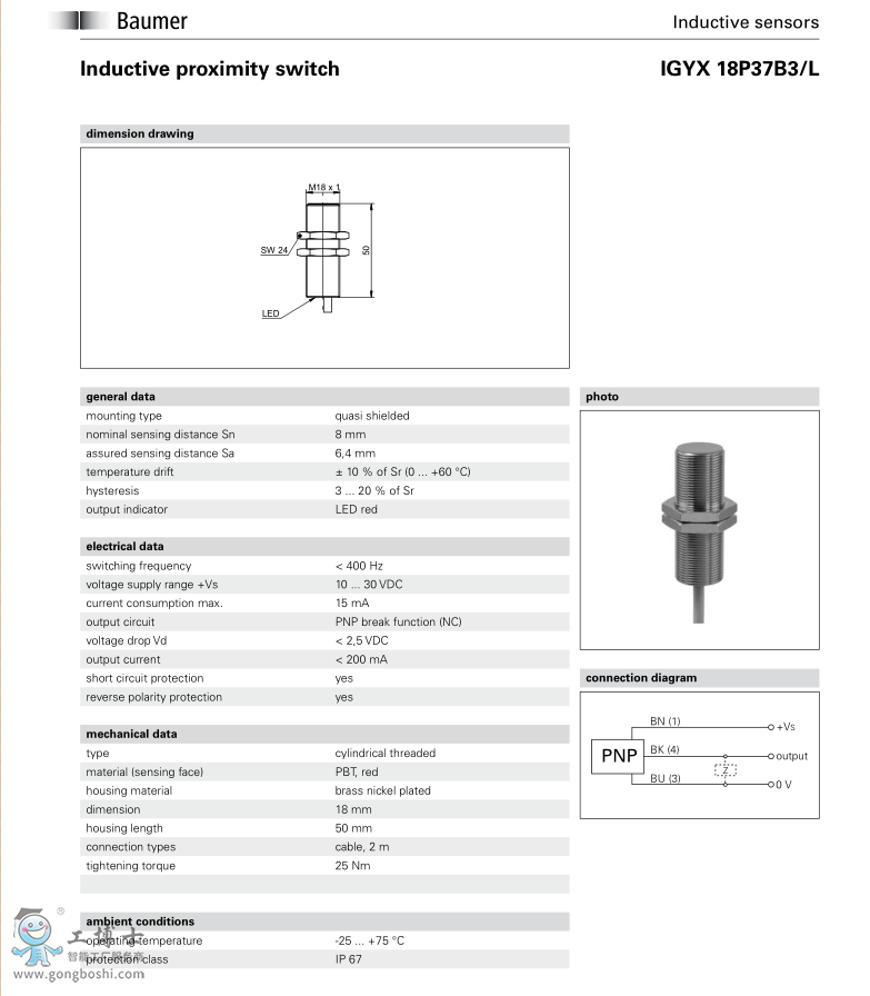 Baumer 堡盟 IGYX 18P37B3/L-電感式接近開關 |