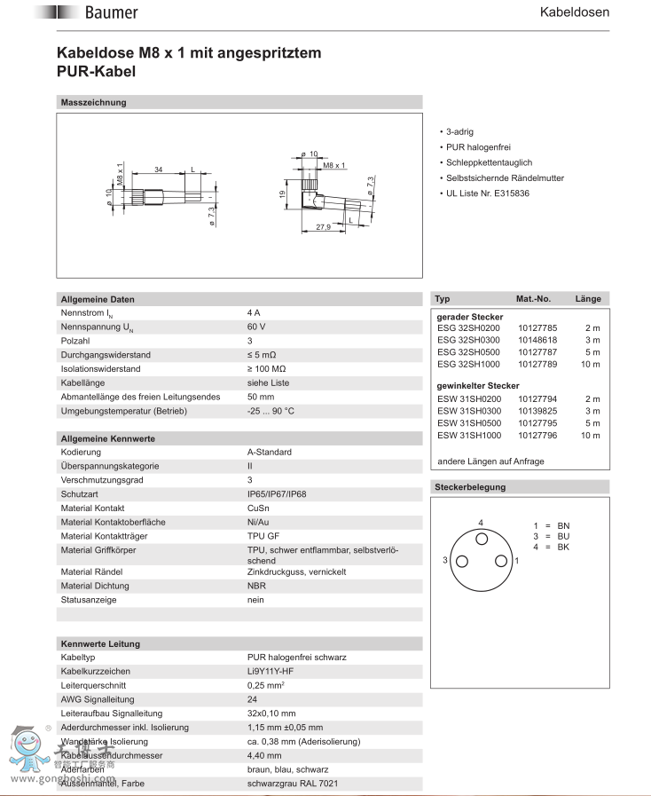Baumer 堡盟 ESW 31SH0500 電纜及適配器 |
