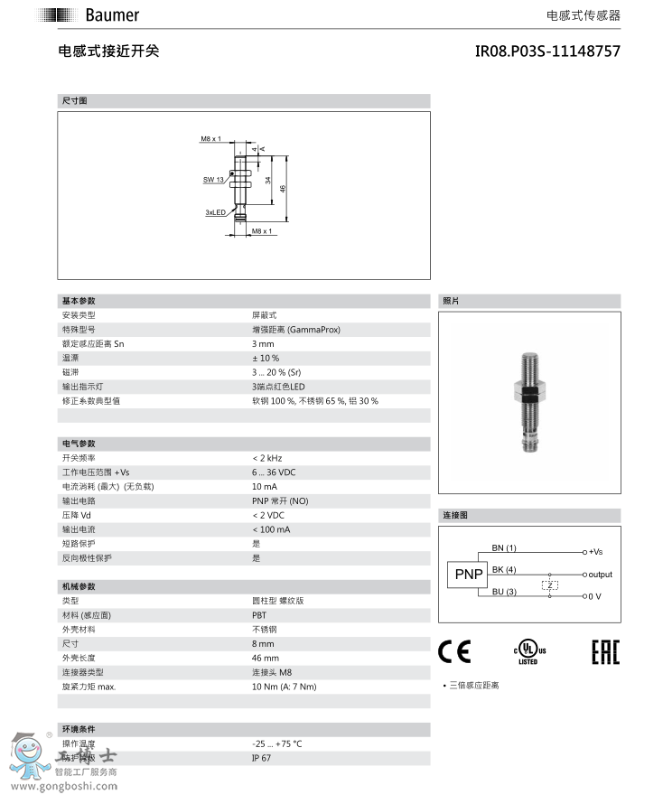Baumer 堡盟 IR08.P03S-F46.PO1Z.7SL-電感式接近開關 可開增票 |
