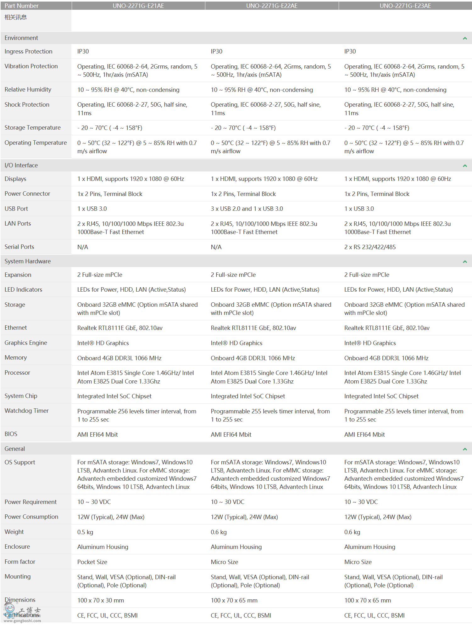 研華科技 小型智慧工廠數據網關 UNO系列 UNO-2271G Intel® Atom™處理器