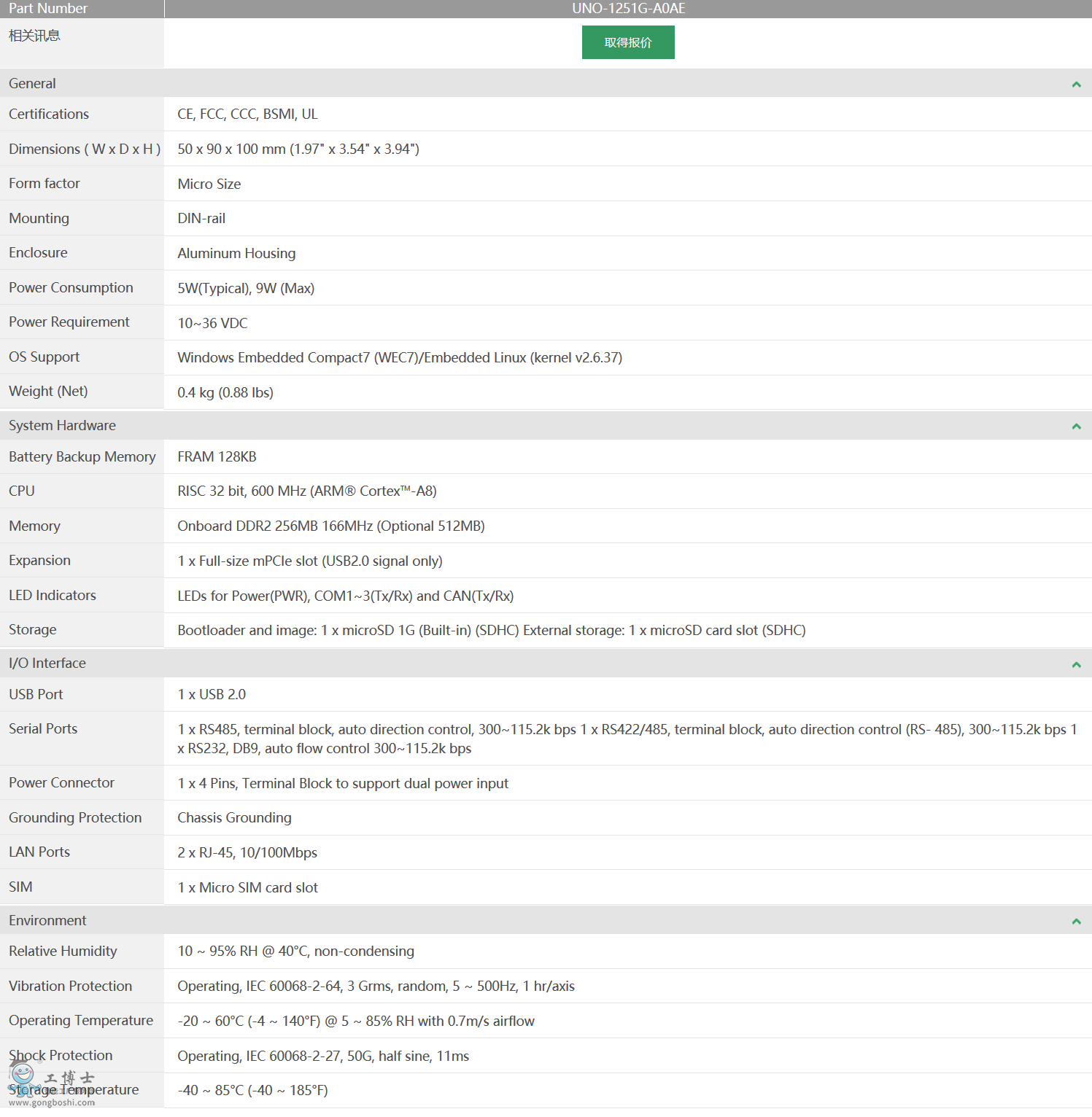 研華科技 工業物聯網網關 UNO系列 UNO-1251G ARM® Cortex™-A8