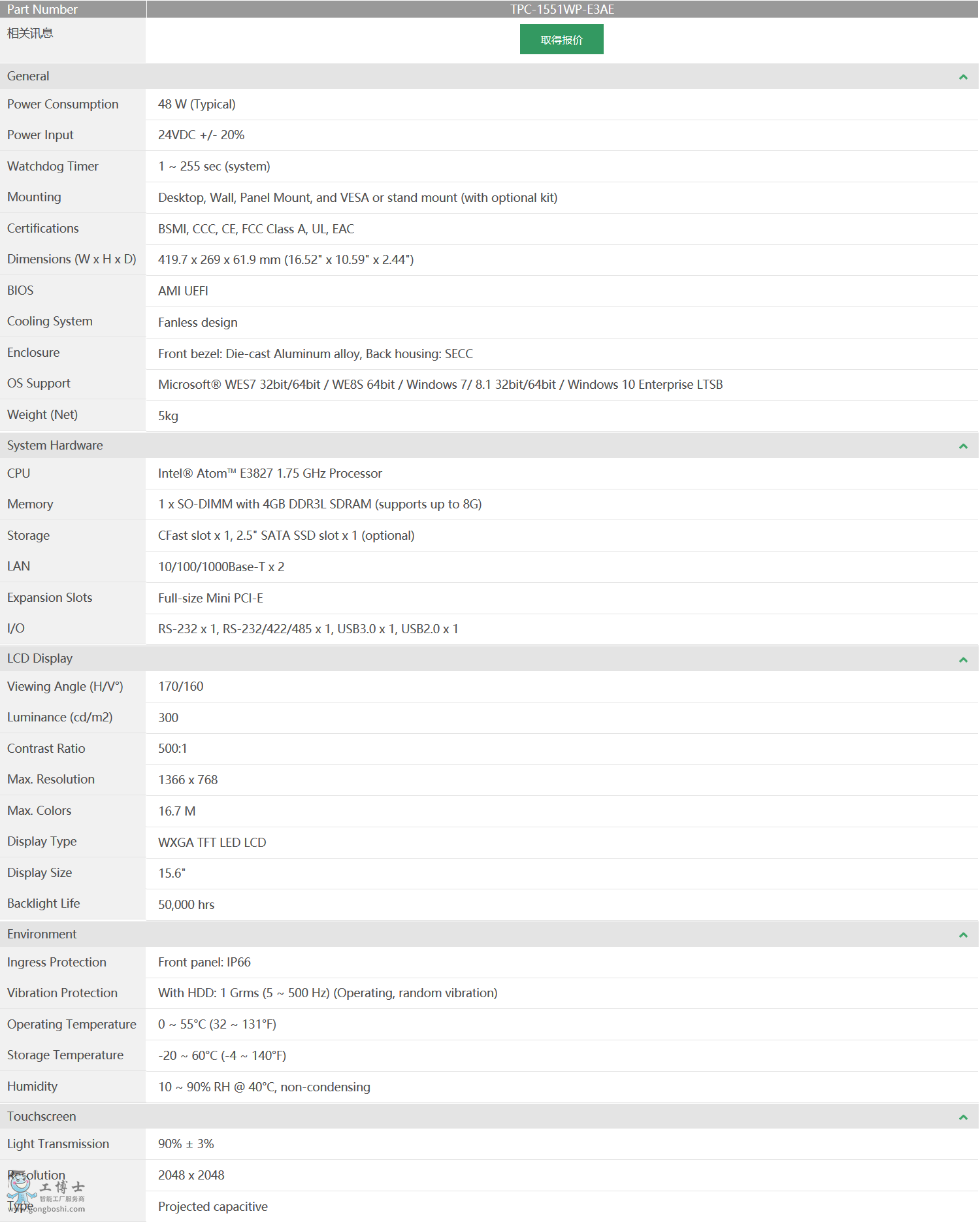 型號: TPC-1551WP