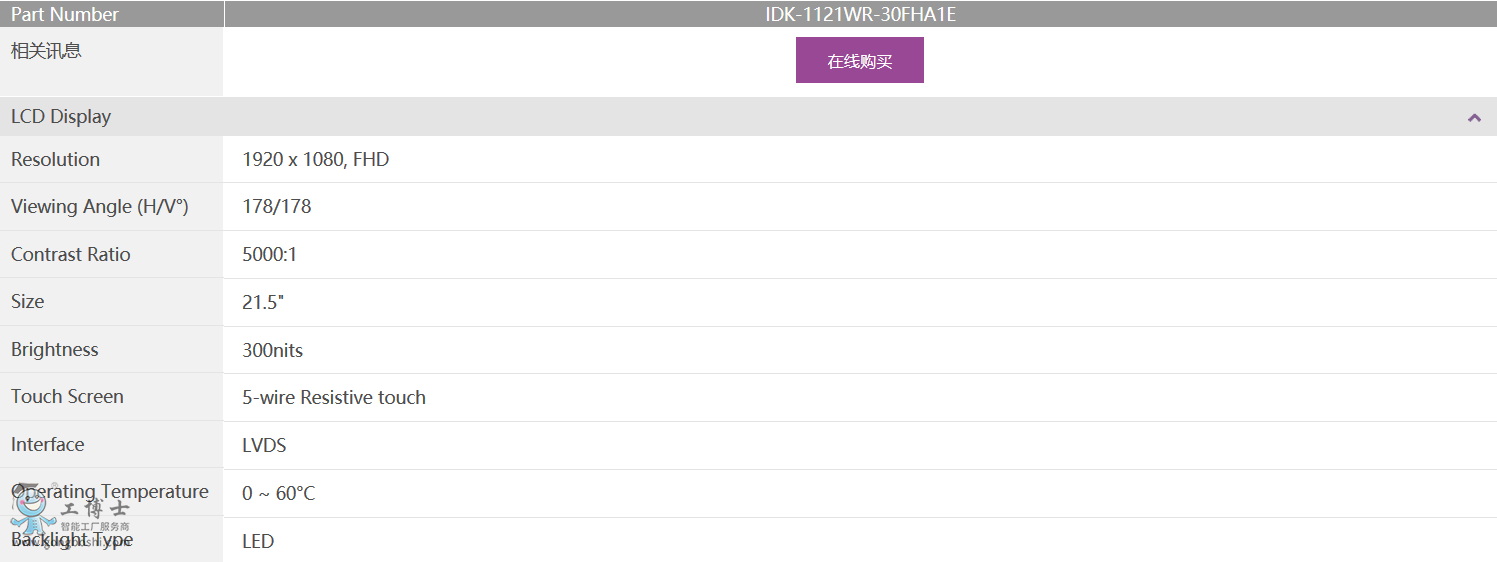 研華工控機 工業顯示器 IDK-1000系列 IDK-1121W 21.5" FHD 工業顯示套件