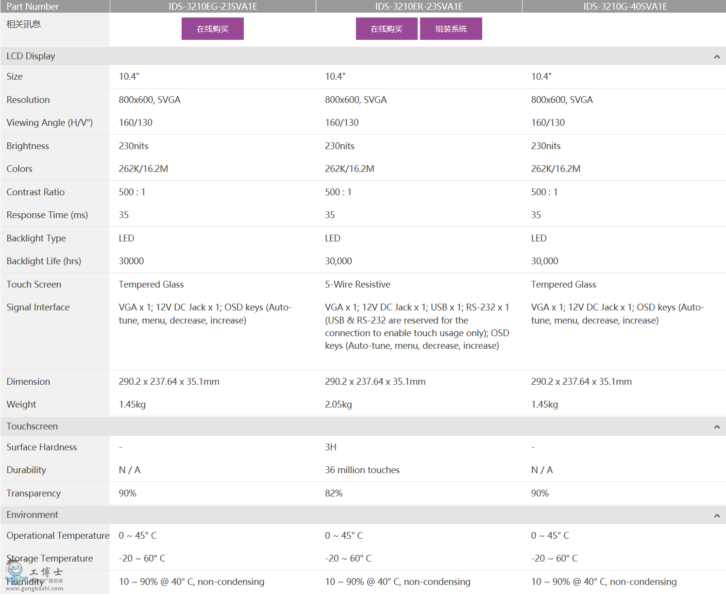 研華工控機 面板安裝顯示器 IDS-3210 10.4" SVGA工業級面板安裝顯示器 |