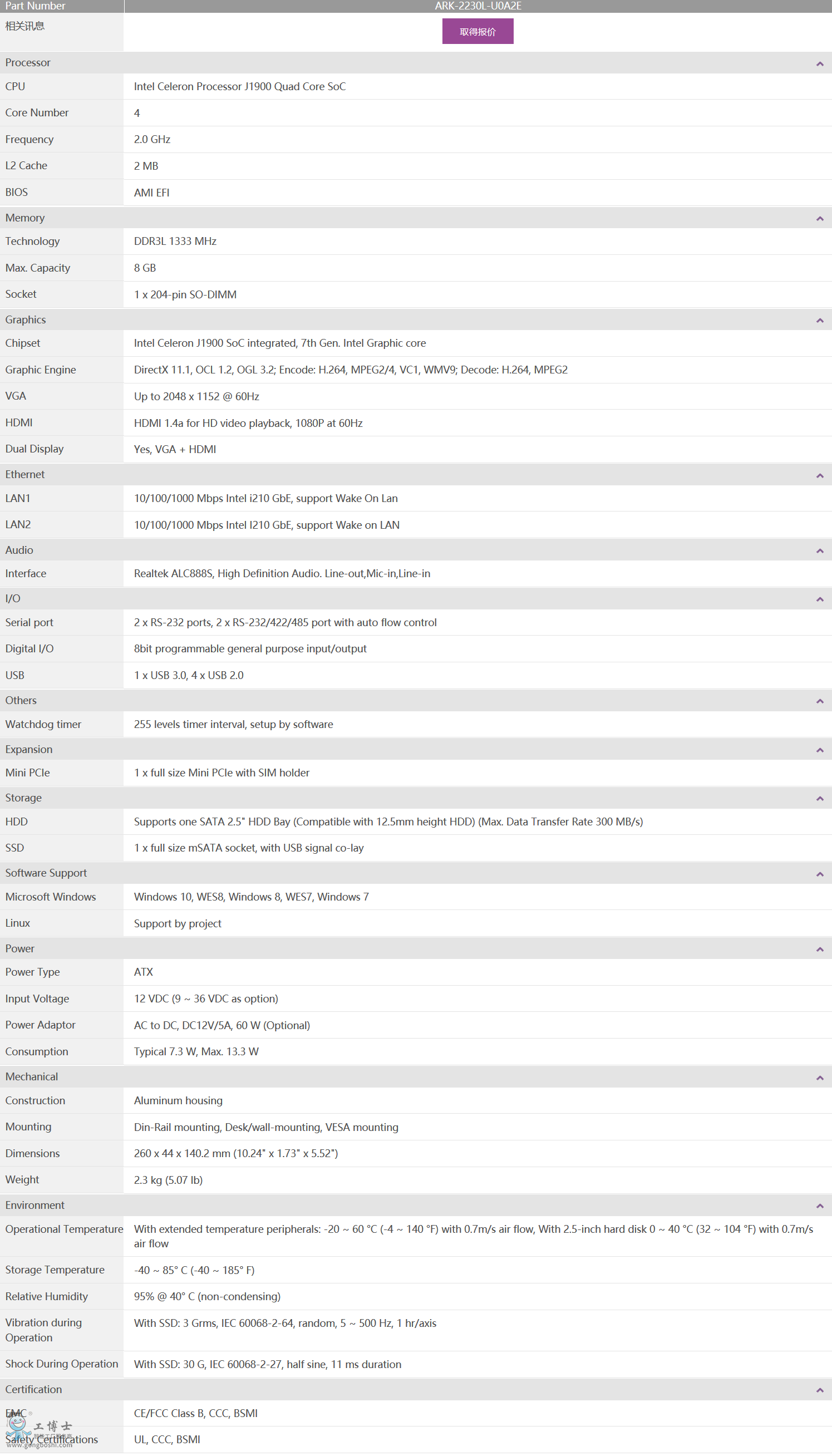 研華工控機(jī) 嵌入式工控機(jī) ARK-1000系列 ARK-2230L Intel®四核 J1900