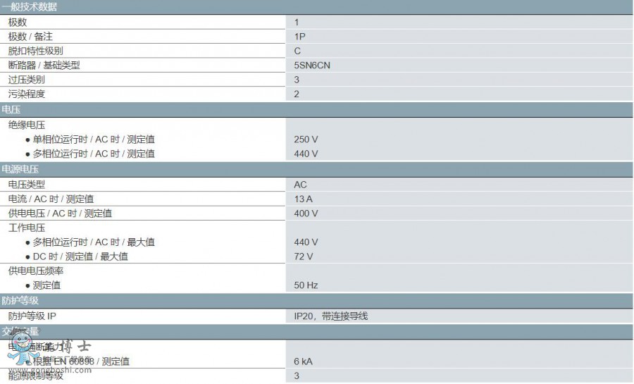 5SN6113-7CN(C13 1P) 西門子 5SN6 微型斷路器
