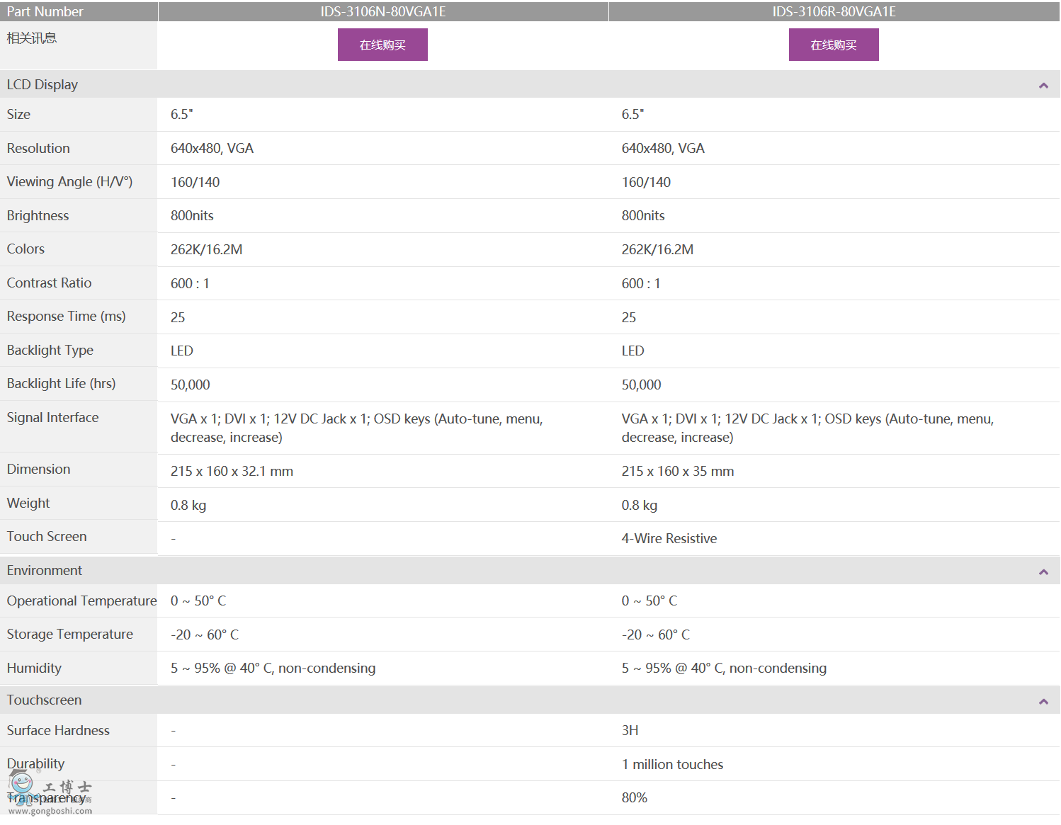• 6.5" 640 x 480 VGA面板采用LED背光燈設(shè)計(jì),可節(jié)能20%,環(huán)保性更高