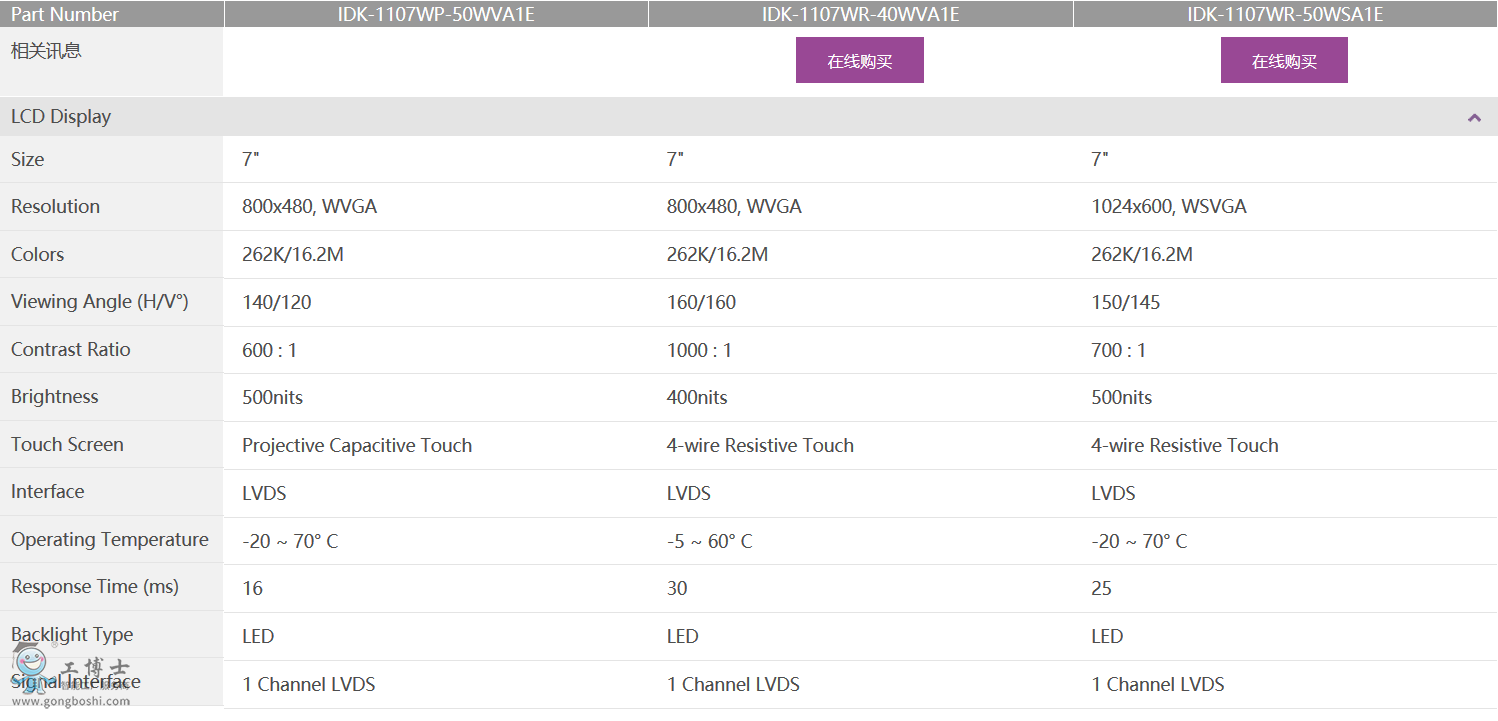 產品特點: 7" WVGA/WSVGA 工業顯示套件,帶觸摸屏解決方案。