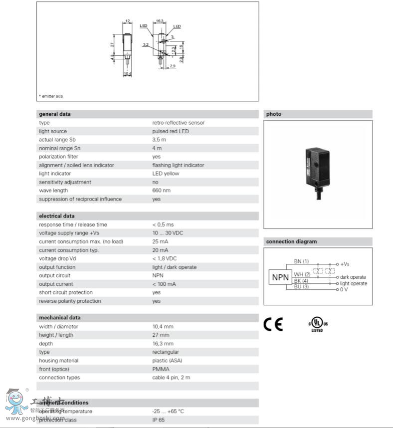 Baumer堡盟鏡反射式光電傳感器FPDK 10P5130/S35 A開增值票 |