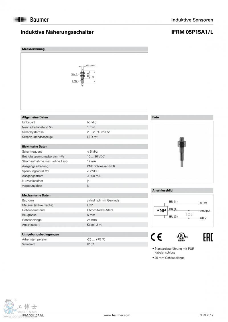 Baumer堡盟電感式接近開關(guān)IFRM 05N35A1/L開增值票 |