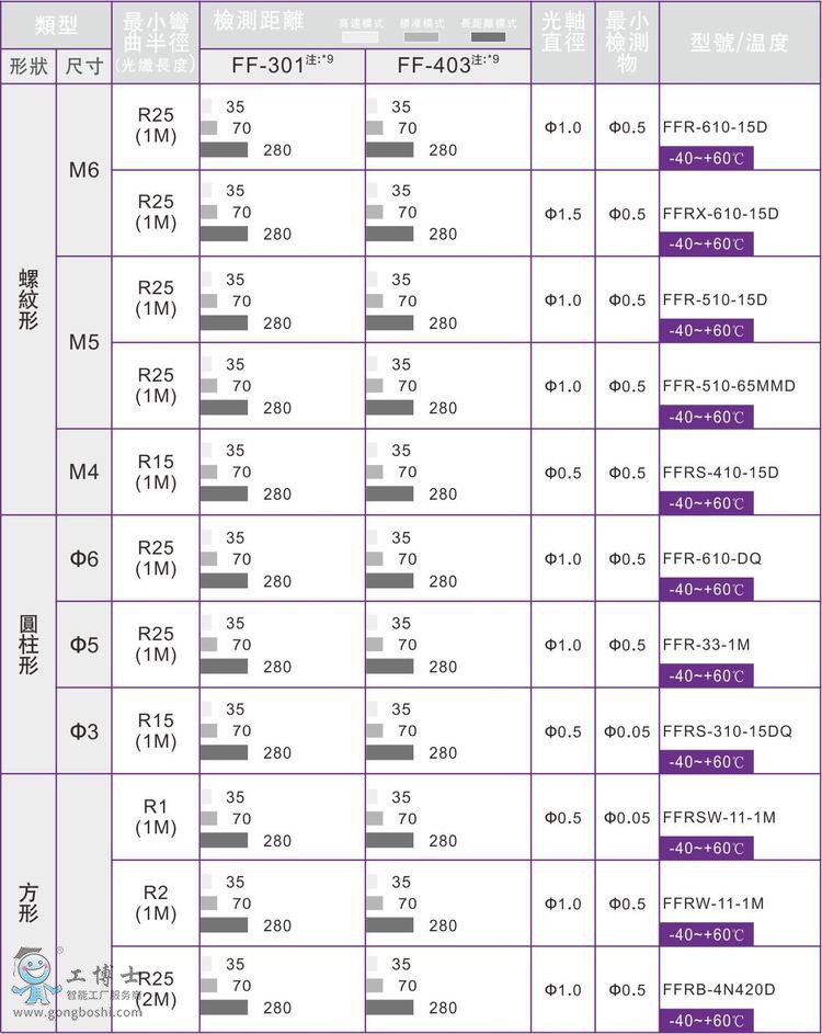 嘉準傳感器FFRX-610-15D M6粗芯漫反射側視光纖管FFRX-620-15D |