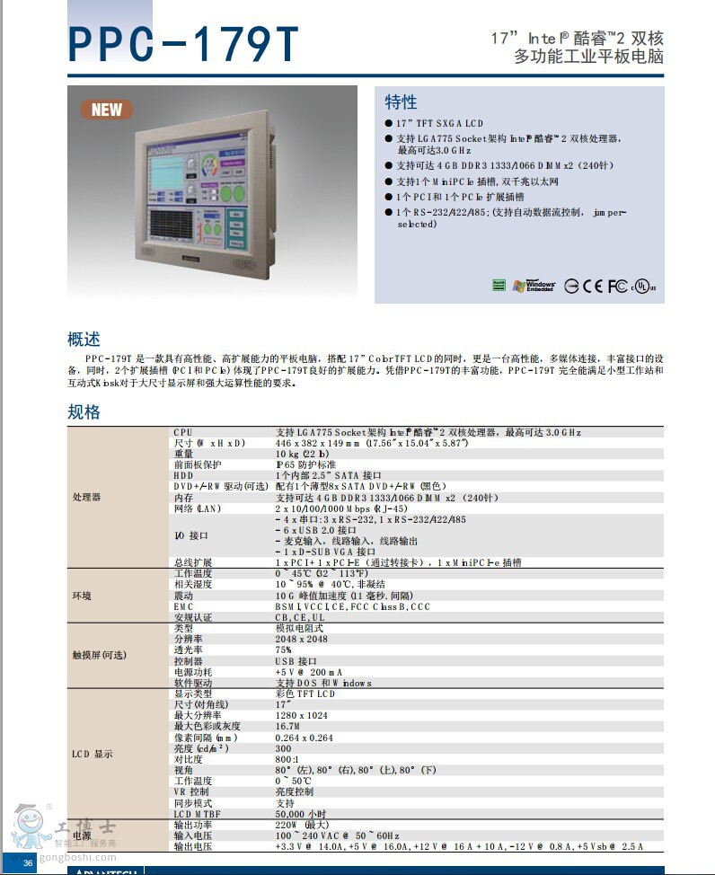 品牌:研華 型號(hào):PPC-179T 類型:工業(yè)級(jí)一體式電腦