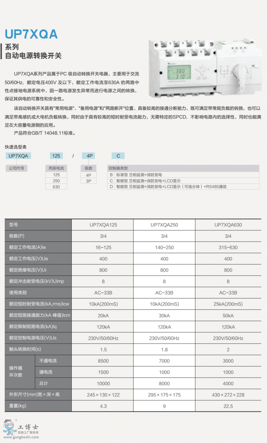 UP7XQA系列UP7XQA630自動電源轉換開關 |