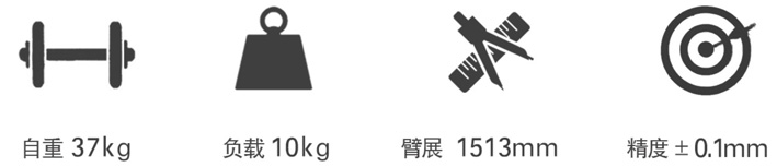 - 臂展為1513mm,可滿足工作范圍在1350mm以內的作業任務
