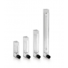 DK-46, DK-47, DK-48和DK-800可變面積流量計有不同長度的玻璃錐管應用于不同精度要求。介質可以觀測,并且氣體或液體流量值可以直接讀取,在測量浮子運動高度范圍內被塑料蓋保護的玻璃測量管易于更換,不用拆開連接為了準確測定流量值,所有裝置配有流量調節閥。幾個型號大小如下圖所示: